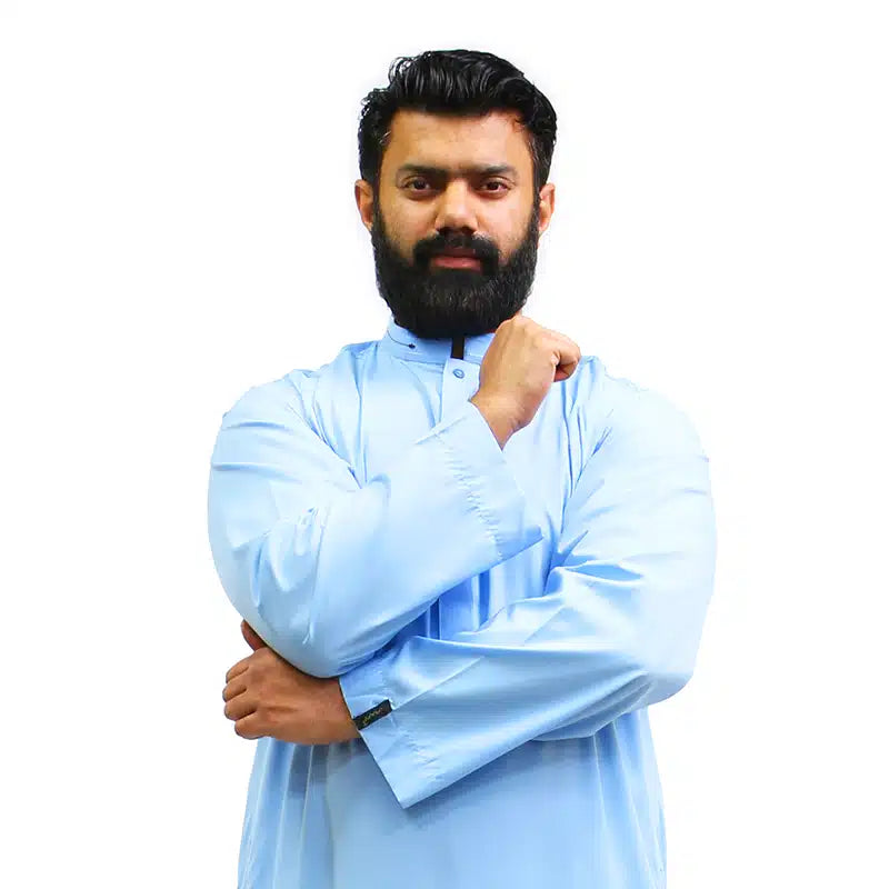 Detail Collar Baby Blue Thobe 962-1