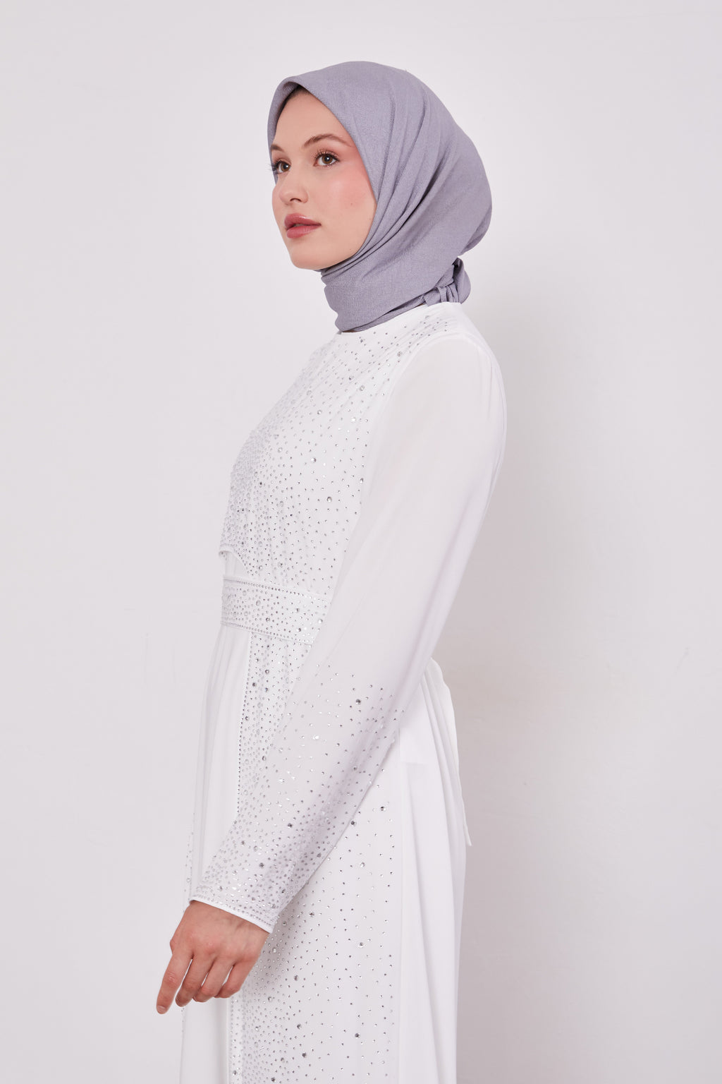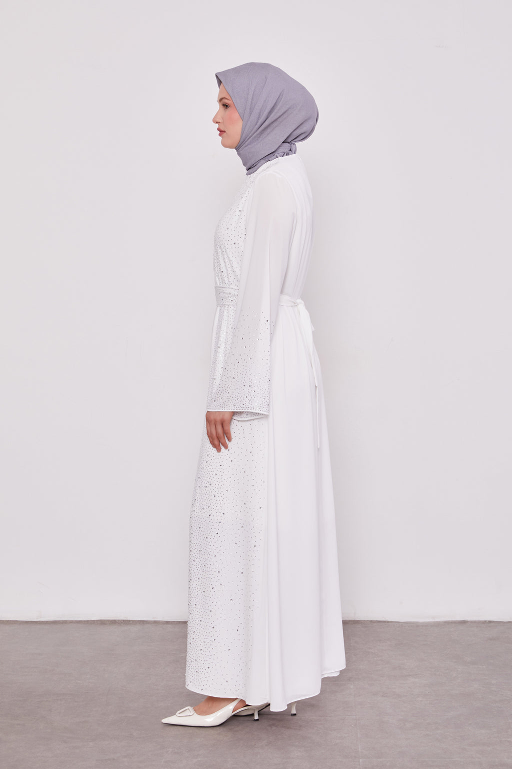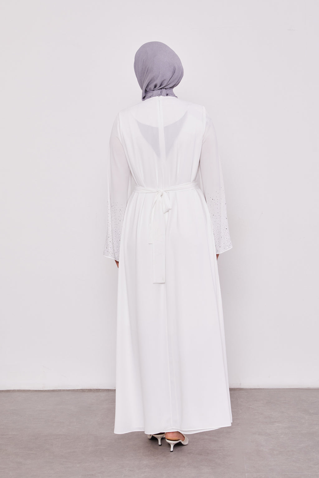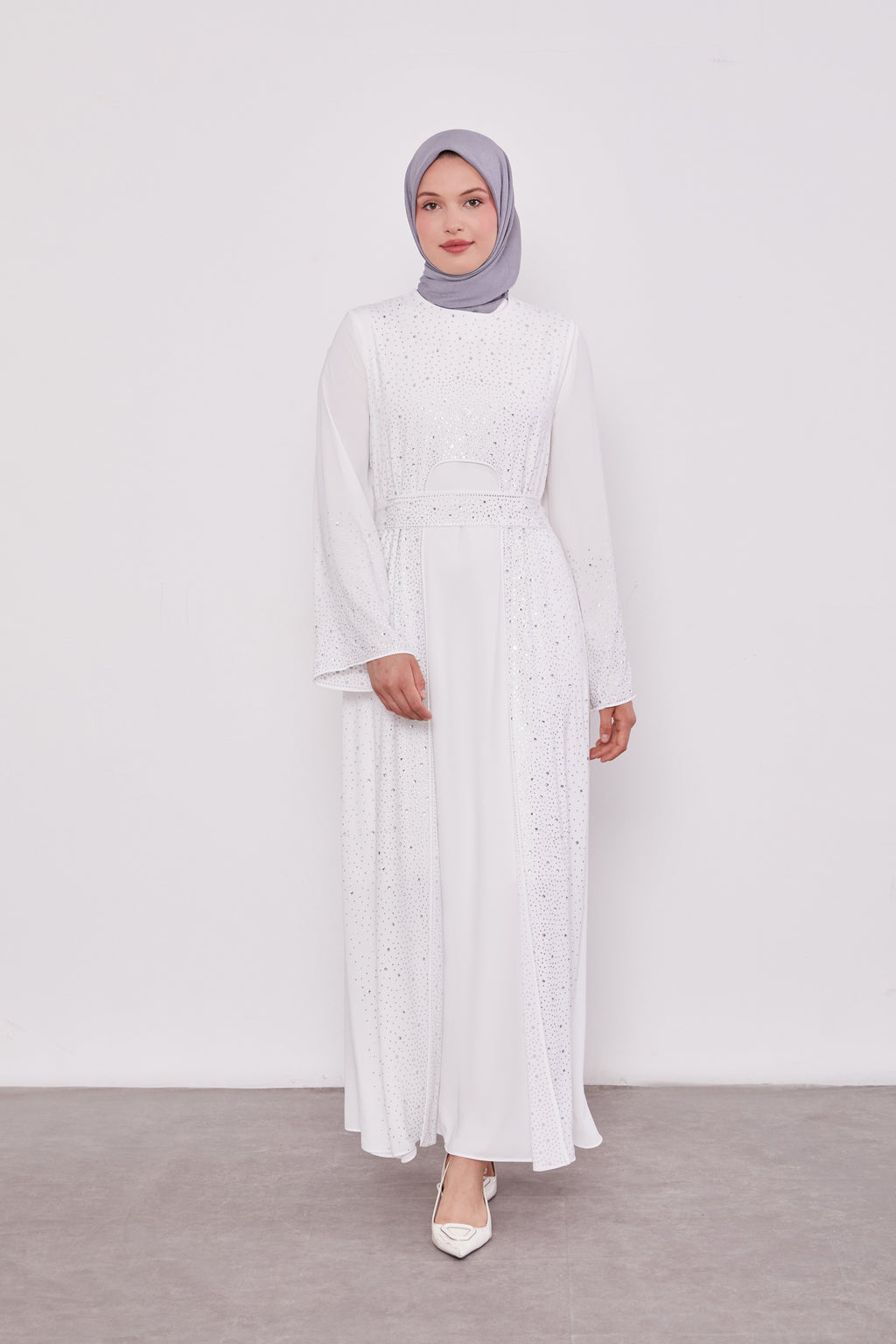 Diamond Beaded 2 Piece Party Abaya White