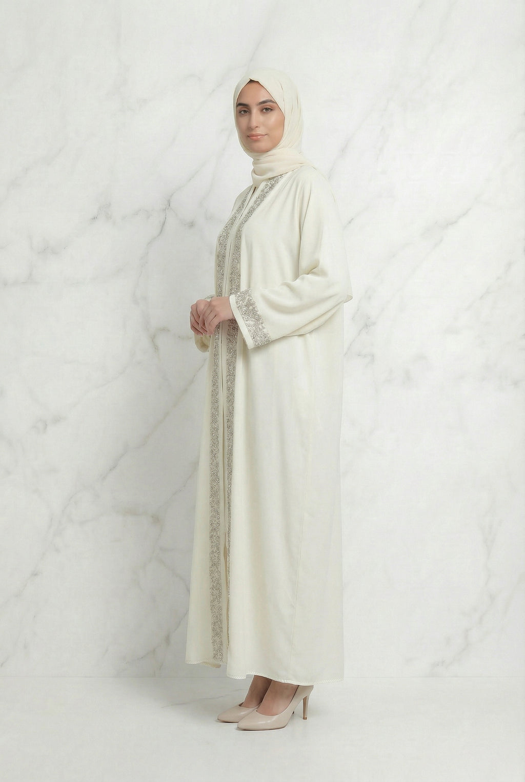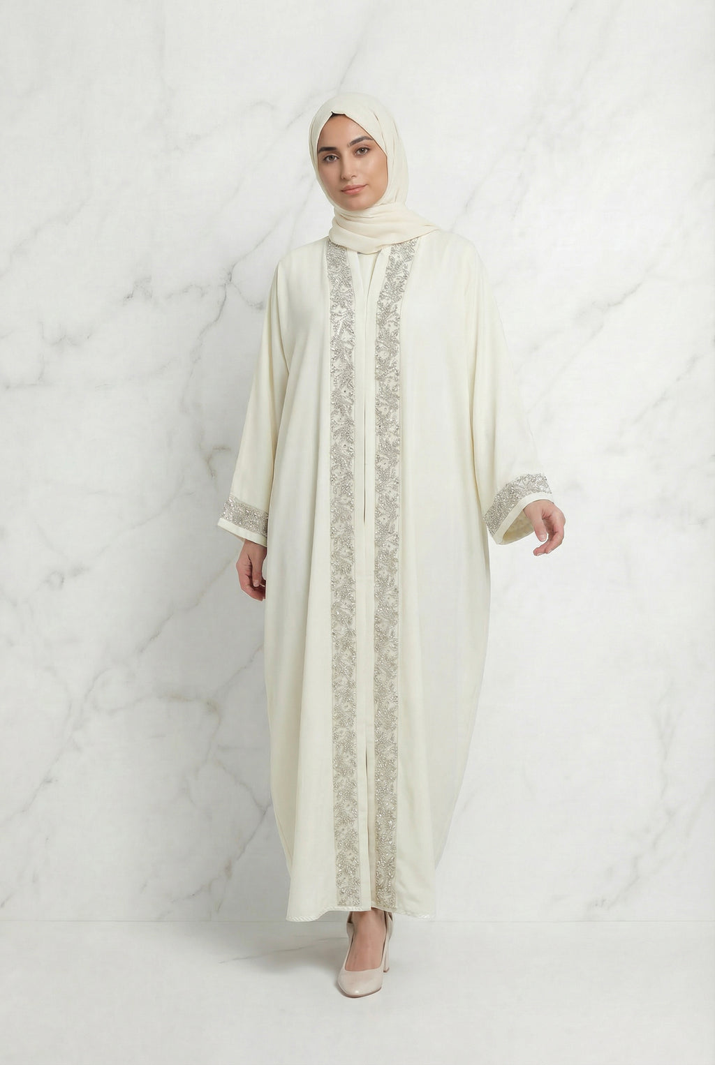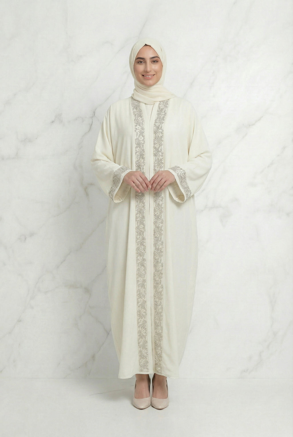 The Elegant Open Abaya in Cream is a graceful and modern piece designed for women