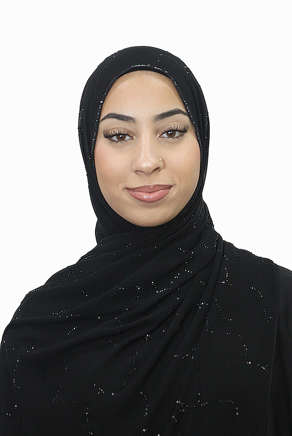 Emirati Chiffon Stone Hijab D1 Black With Black Beads Col 2