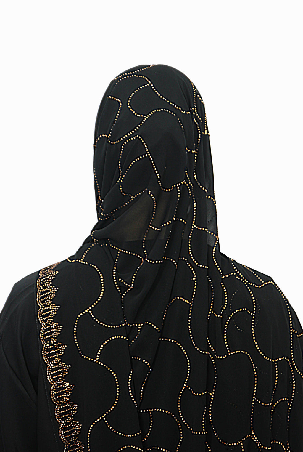 Emirati Chiffon Stone Hijab D2 Black With Gold Beads Col 3