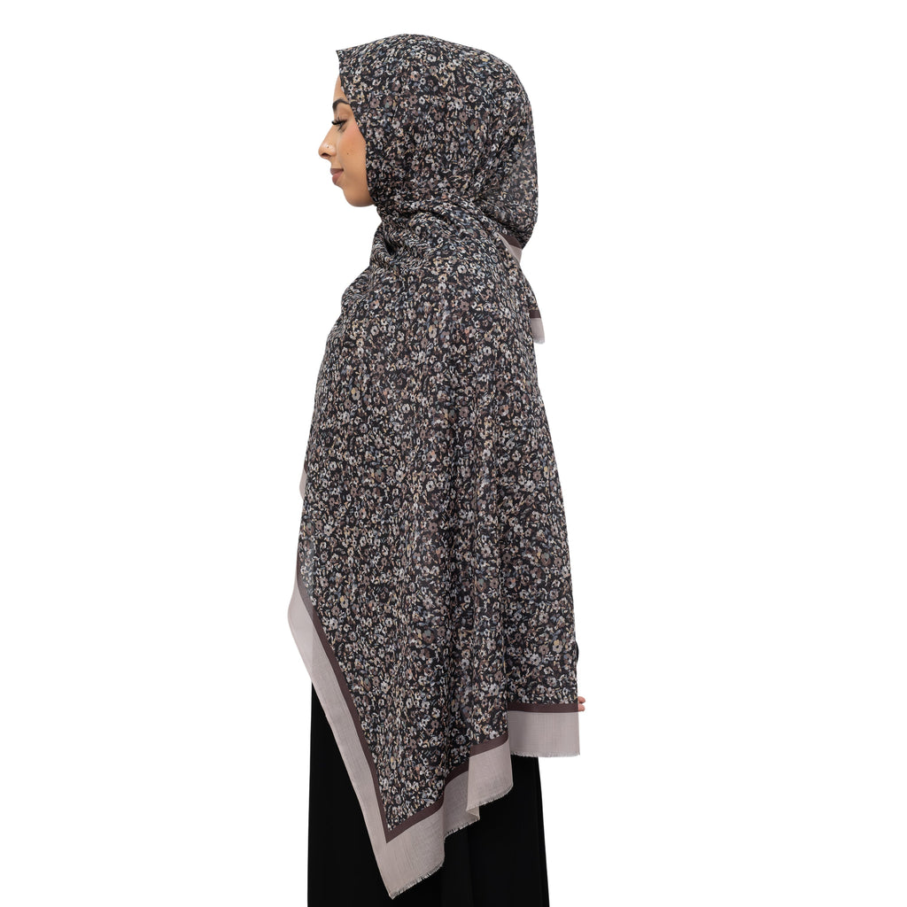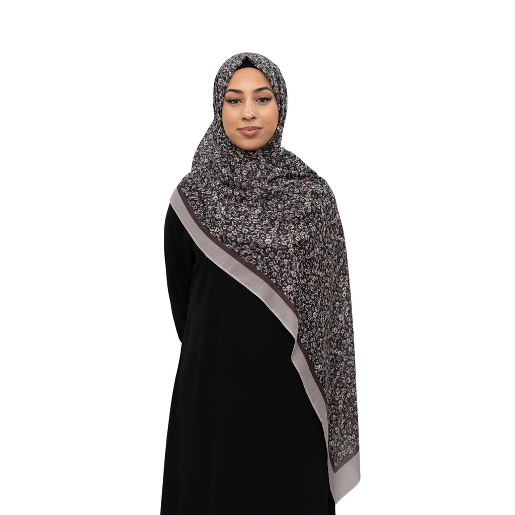 Exclusive Cotton Print Hijab Floral Black Pink Col 16