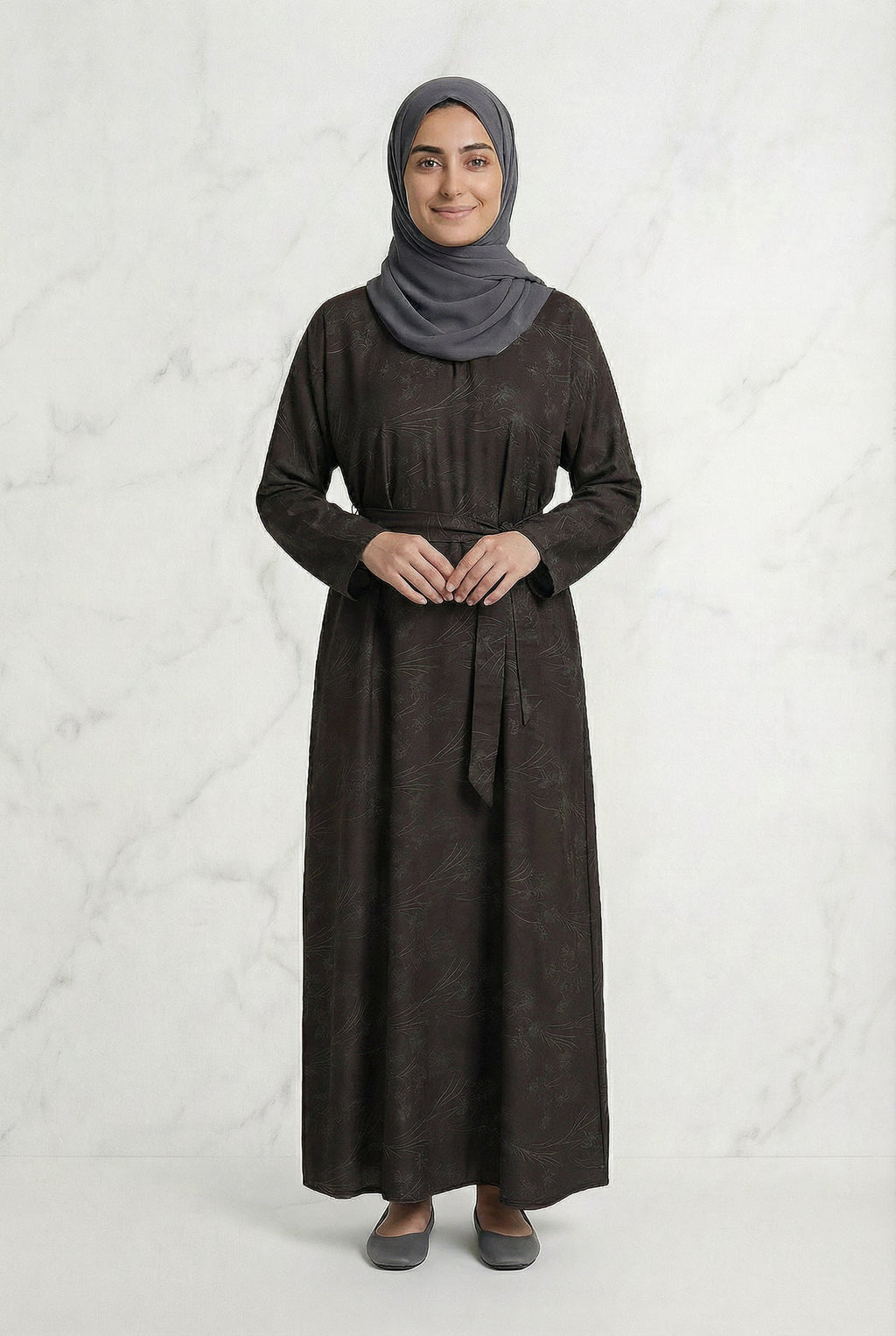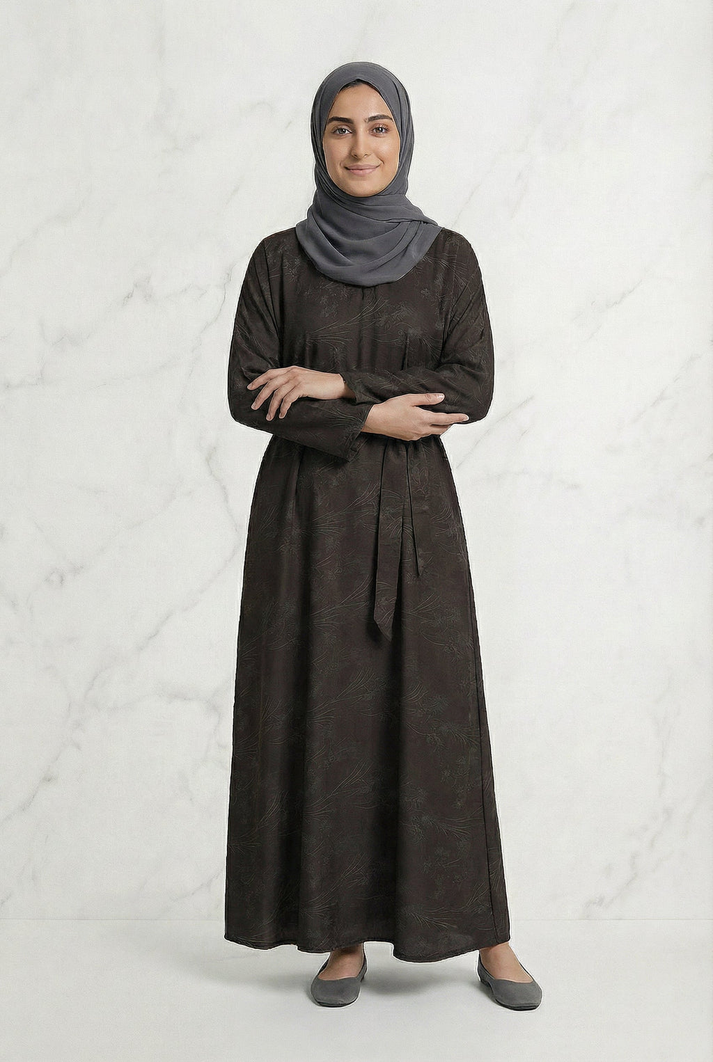 Floral Weave Abaya Dark Chocolate 653 Col 3