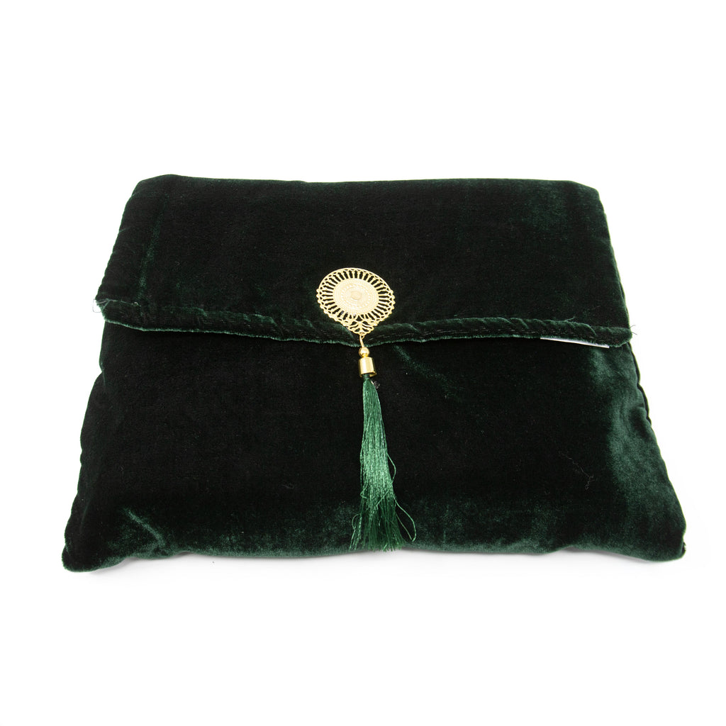 The deep black colour gives it a timeless and dignified appearance, complemented by a smooth satin inner lining that gently cradles the pages of the Qur’an. A secure button closure ensures the book remains safely in place, while the decorative tassel adds a subtle touch of traditional charm.