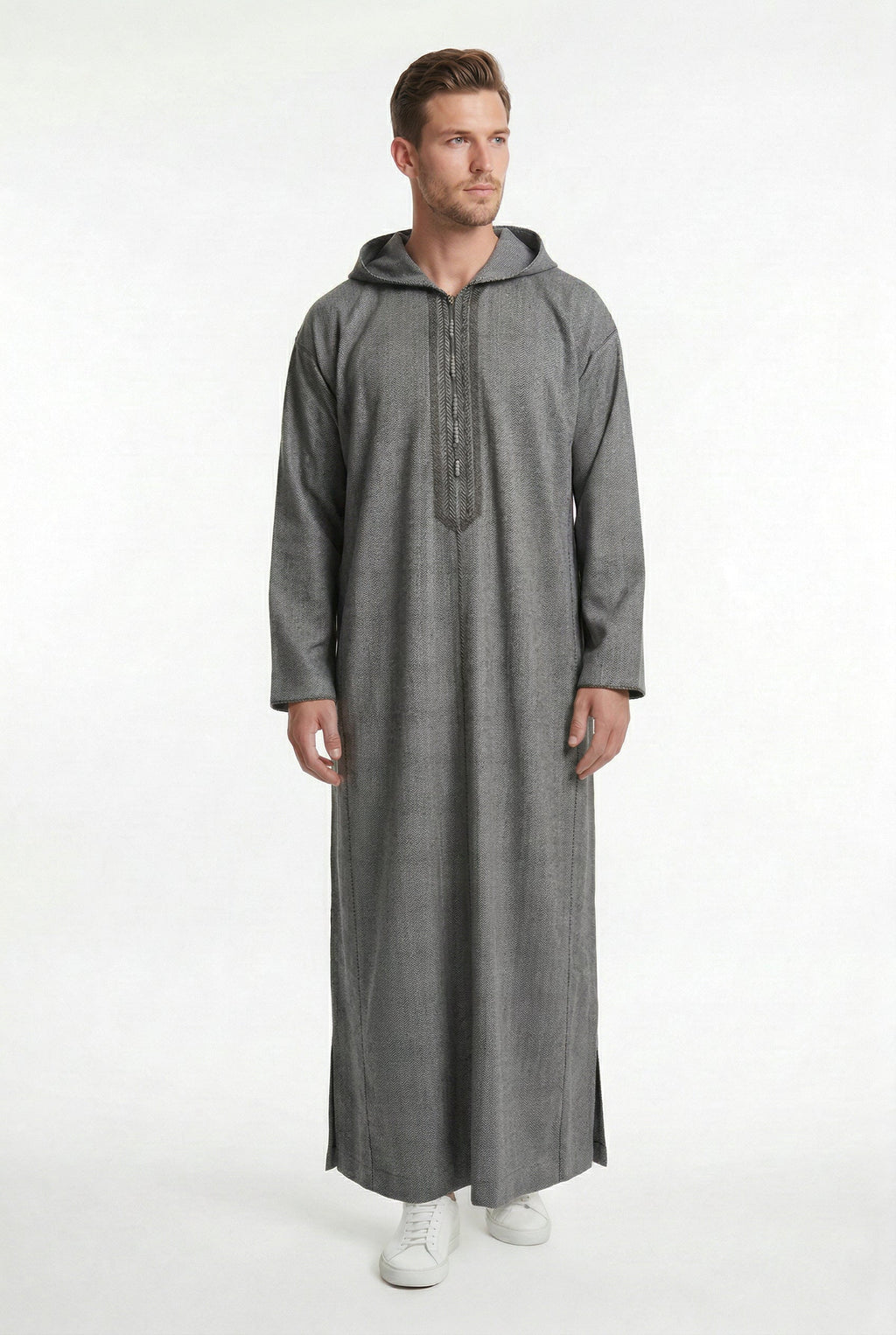 Expertly crafted with a fine fabric blend, this Moroccan thobe combines traditional craftsmanship with contemporary fashion, offering exceptional comfort, warmth, and durability.
