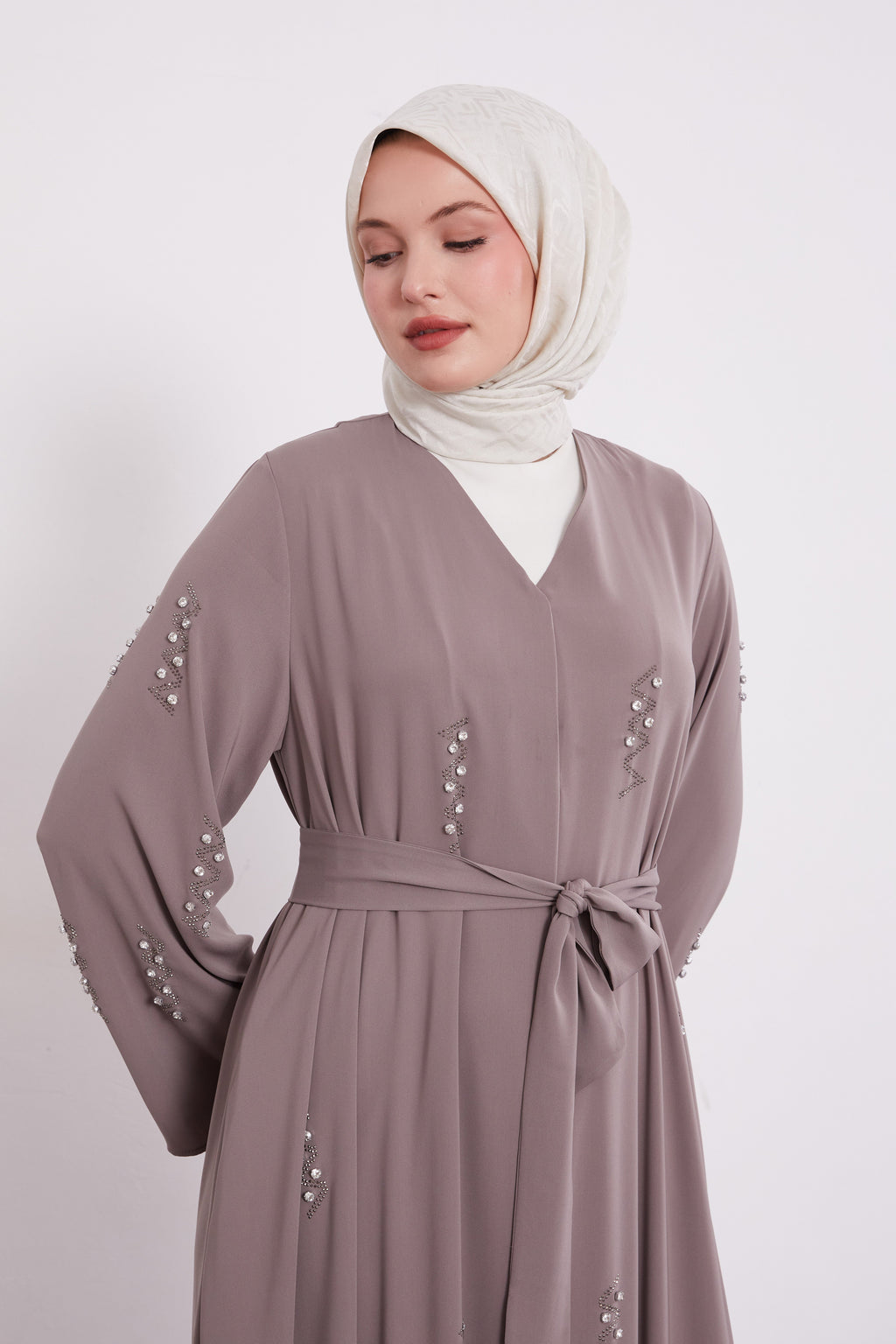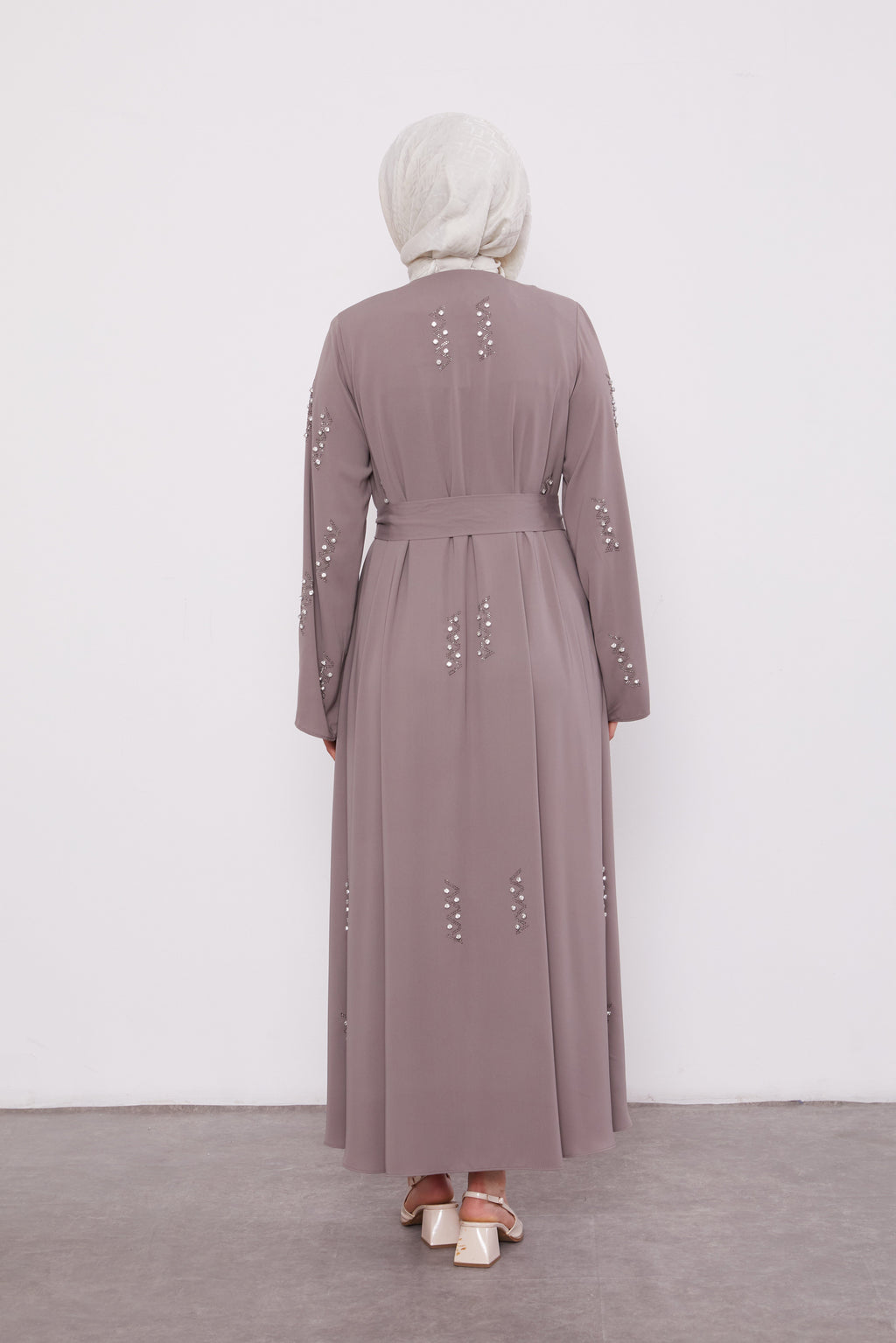 Pearl Constellation Buttoned Abaya Mink 520369