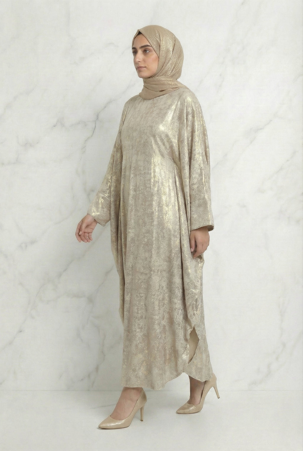 The Velvet Abaya in Champagne Gold is a statement piece designed for elevated modest styling.