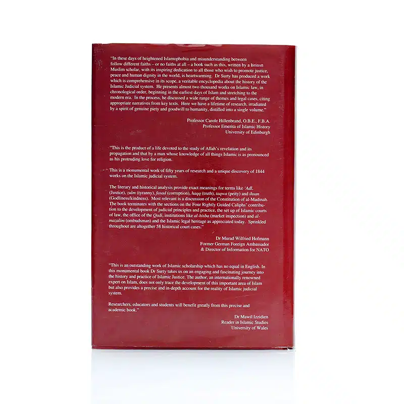 This monumental work delves into Islamic judicial history, highlighting the principles of al-Tawhid (Oneness of God) and al-Adl (justice) through Qur'anic and Sunnah perspectives. Dr. Surty's research spans from pre-Islamic justice to modern times, discussing the Prophet Muhammad's journey to justice, contributions of the Rightly Guided Caliphs, and the evolution of Muslim judicial heritage. The book encompasses themes of peace, equality, freedom, and human dignity as fundamental legal rights within Islamic jurisprudence. It presents nearly two thousand works on Islamic law, organized chronologically, providing a wealth of insights into the development of Islamic legal systems and the application of justice in Muslim societies. This scholarly endeavor promotes understanding and goodwill amidst contemporary challenges and misunderstandings.