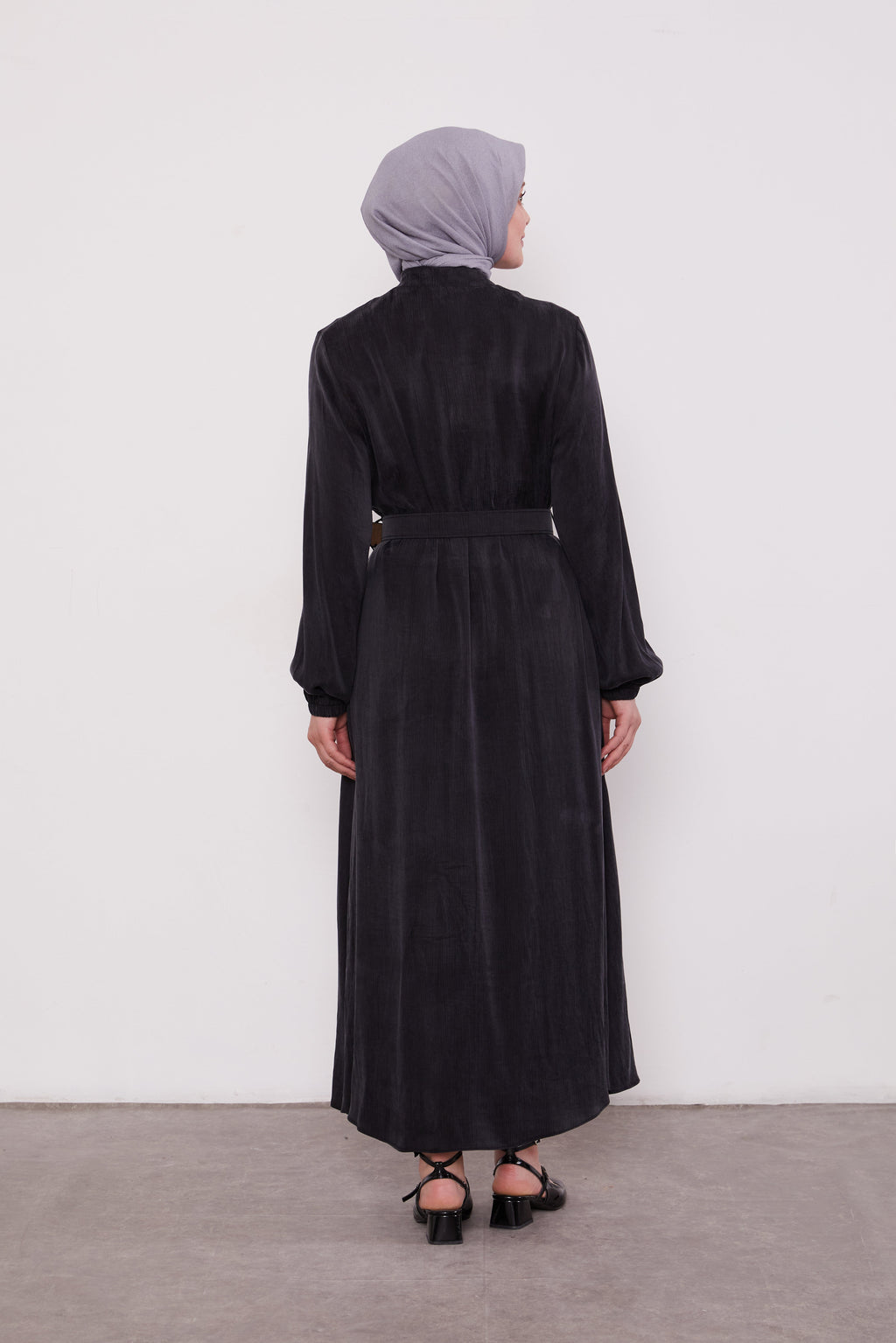 Suede Zipped Belted Abaya Black