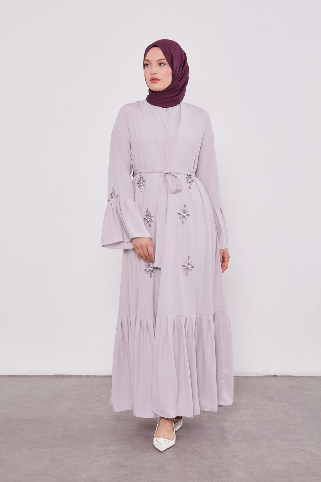 Two Piece Frilled Corsage Diamond Kimono Set Lilac 520709