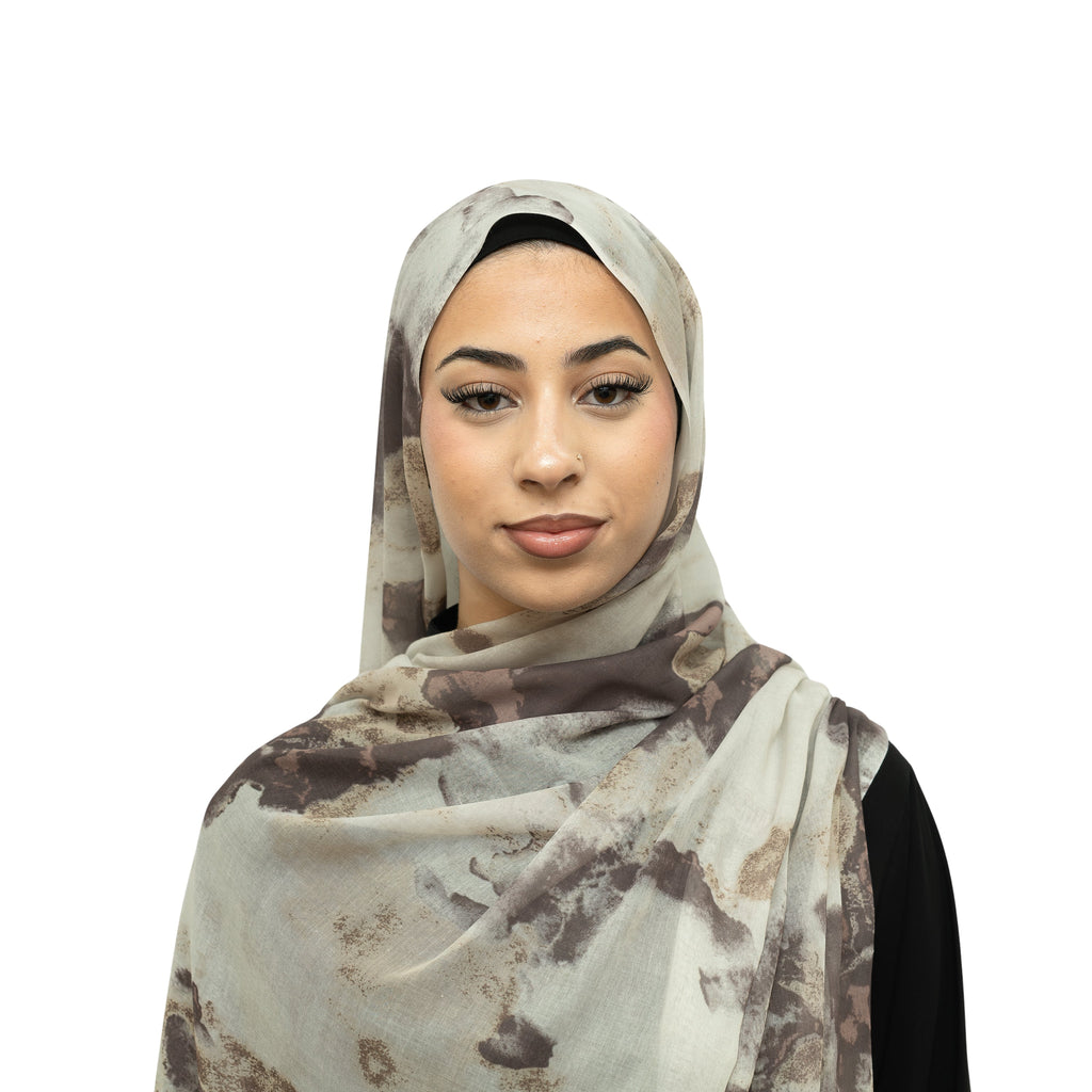 A soft, airy modal hijab featuring a smooth watercolour pattern with beautifully blended transitions and gently faded edges. Ultra-light and effortless to style for everyday wear.
